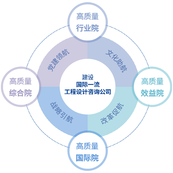 堅持“黨建領航、戰略引航、改革促航、文化助航”,著力打造高質量發展“行業院、綜合院、國際院、效益院”,簡稱“四航四院”總體發展思路。