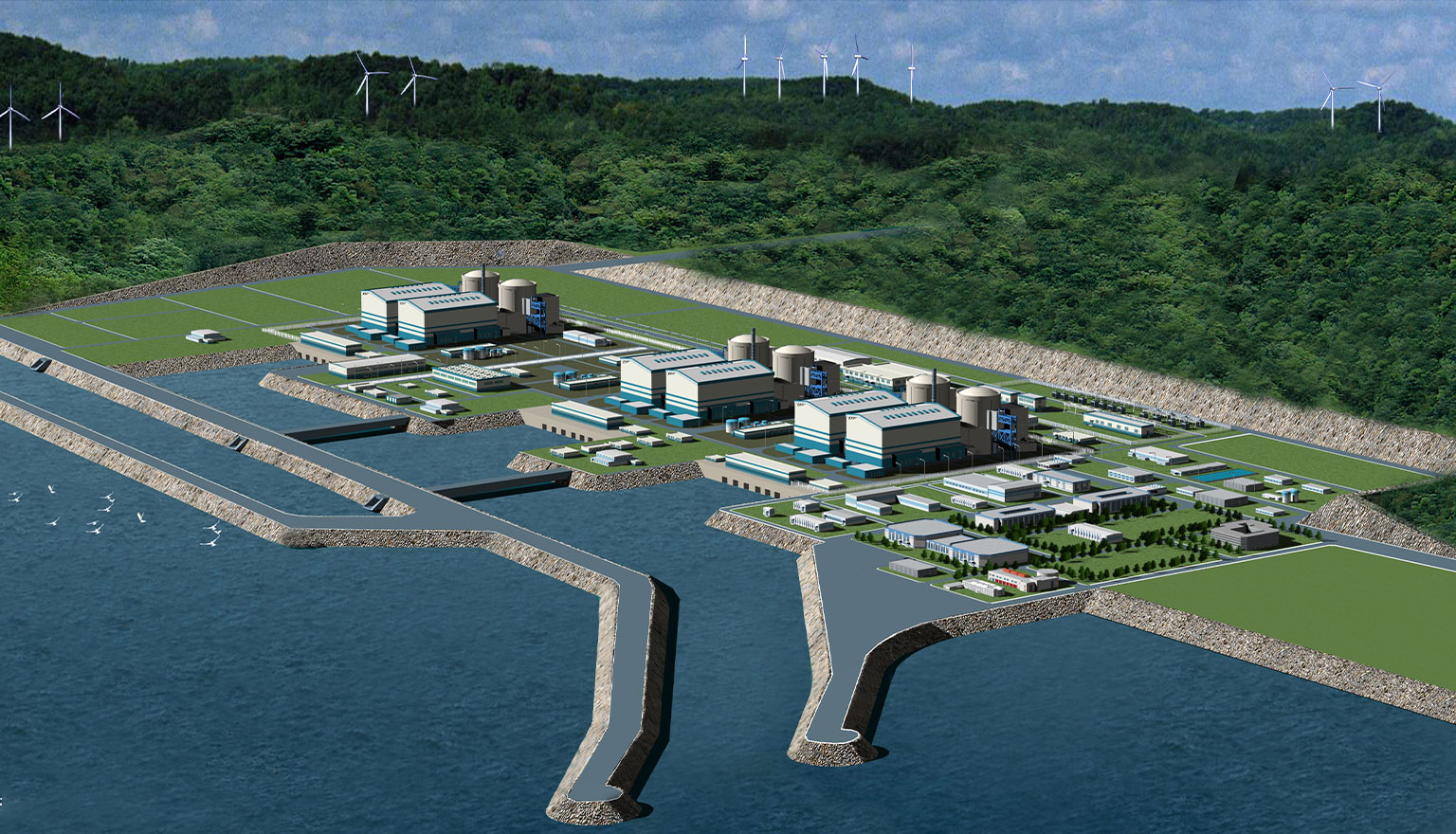 建設6臺機組,總裝機容量6000MW。承擔了一期、二期工程(除34號機組排水暗涵以外)所有海工構筑物的工可、初步設計、施工圖設計工作,建設內容包括取水明渠南導流堤長約780米,取水明渠北導流堤306米,排水明渠南導流堤1890米,排水明渠西導流堤1720米,排水明渠東導流堤700米,中隔堤1410米,廠區護岸總長2880米,暗涵1151米,一座3000噸級大件碼頭和防冰攔污設施。