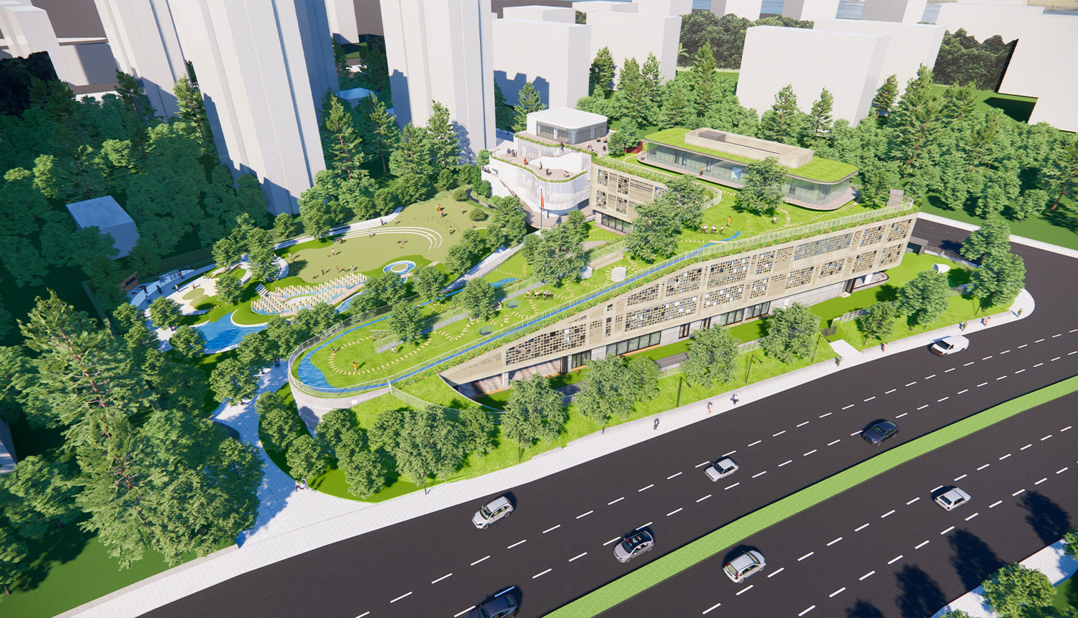 項目位于浙江省寧波市奉化區方橋街道,琎琳站東側,山隍路西側,總用地面積11500平方米,總建筑面積約8200平方米,包含幼兒園、遺址公園及社區中心等三個部分。