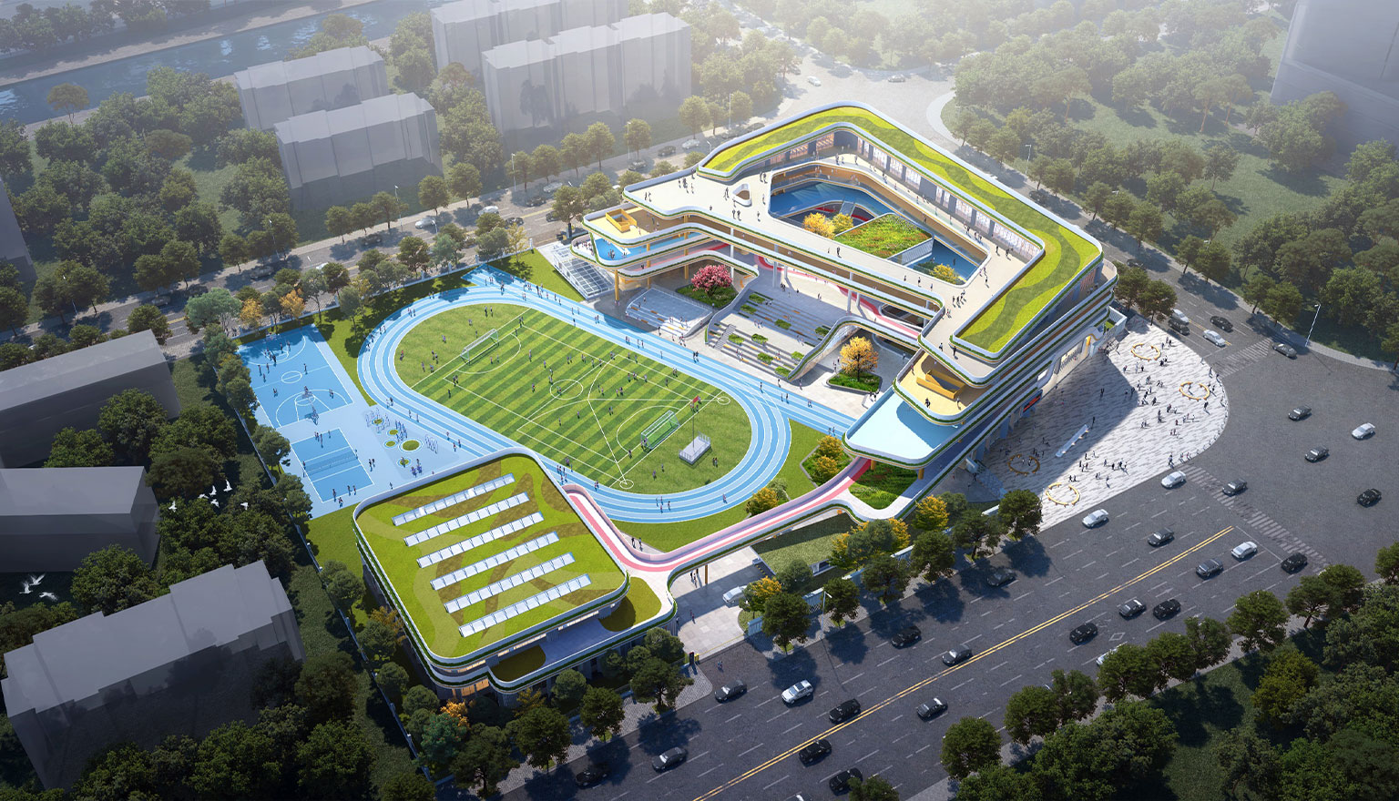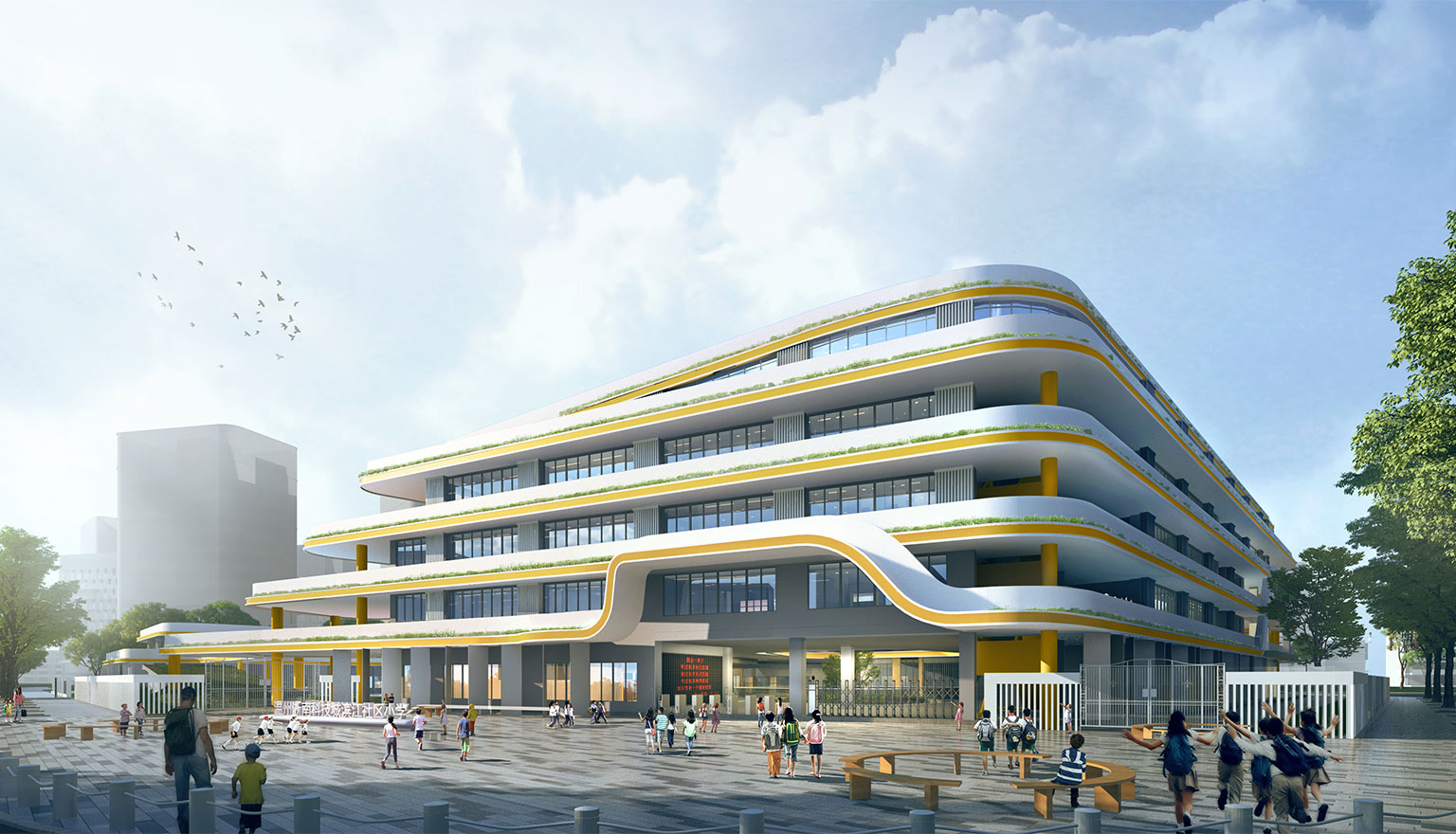 項目位于溫州市浙南科技城,總用地面積18314平方米,總建筑面積35298平方米。項目為18班小學,為龍灣濱江社區配建的高標準教育配套。