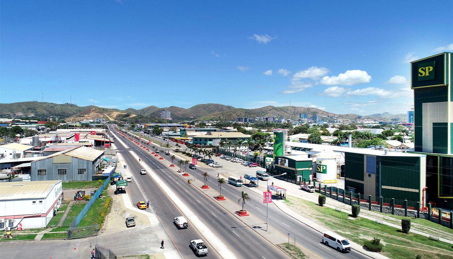 中國援巴布亞新幾內亞道路項目位于巴新首都莫爾茲比港,是巴新政府舉辦2018年APEC會議的重點配套工程。項目包括新建獨立大道和修繕升級機場快速路兩個部分。獨立大道全長1.06千米,為雙向六車道瀝青混凝土路面,設計速度50千米每小時,是當時巴新等級標準和技術標準最高的道路;首都機場快速路連接杰克遜國際機場和首都核心商務區,全長8.44千米,雙向四車道,設計速度60千米每小時。