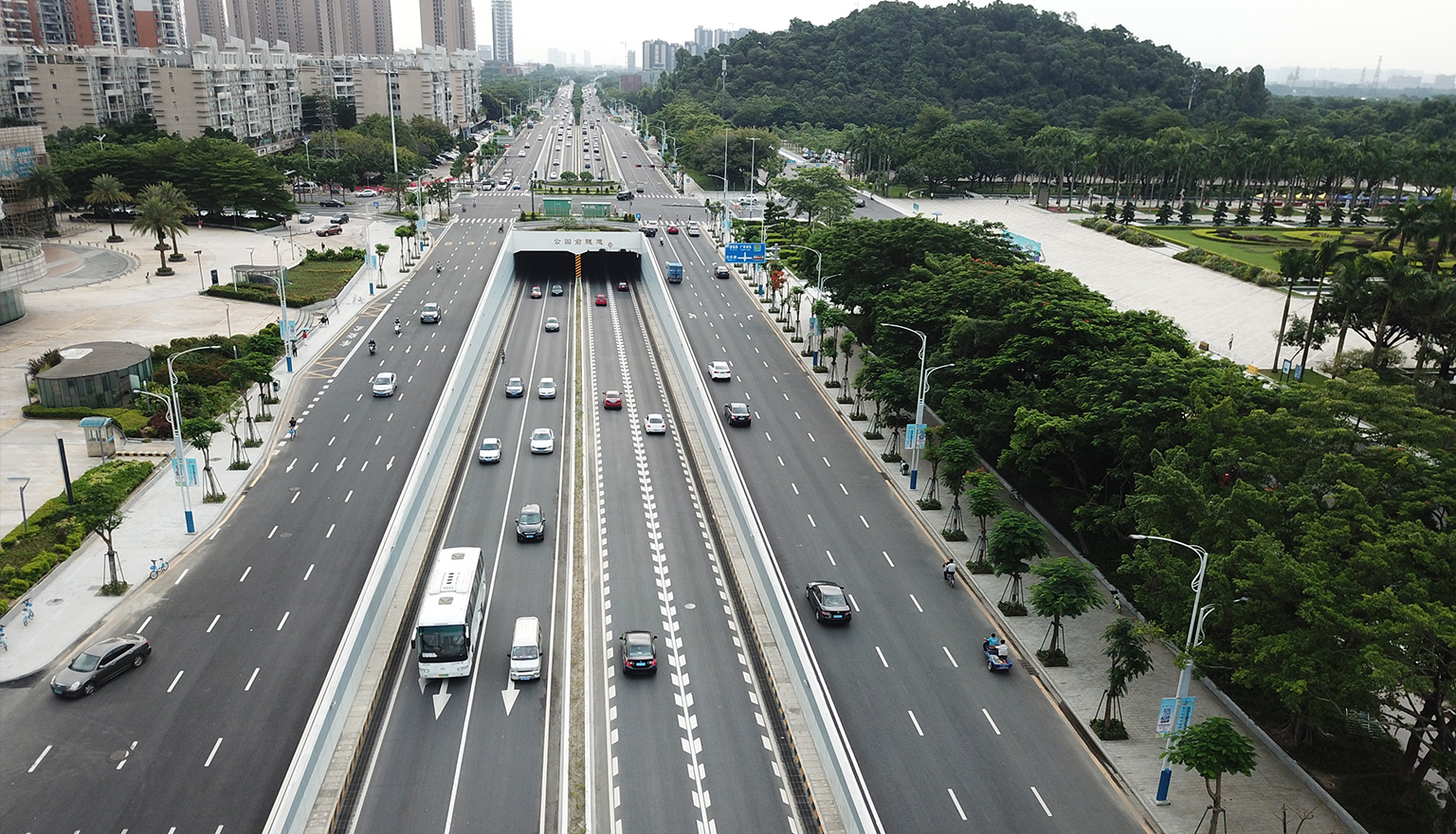 道路全長4.8千米,采用城市主干道設計標準,包含4座跨線橋、2座隧道、6座輔道橋。