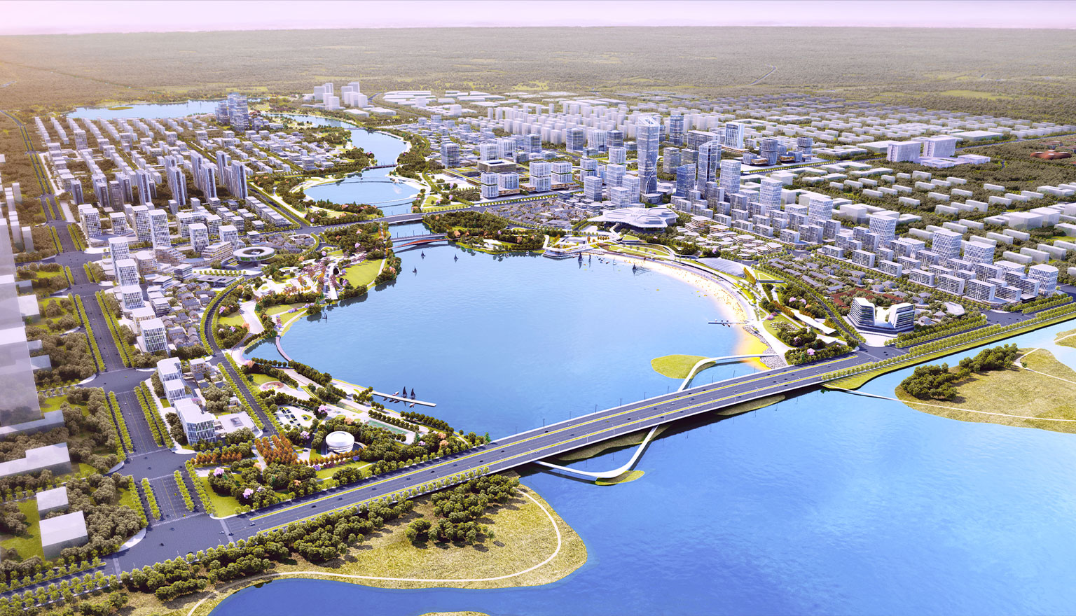 項目位于山東省青島膠州市,在上合示范區的國際客廳核心區域,包含上合大劇院工程、上合如意湖工程以及市政配套工程等建設內容,上合大劇院建筑面積7.2萬平方米,上合如意湖占地面積7.3平方公里。上合大劇院內設歌劇院、音樂廳和多功能小劇場,上合如意湖工程涵蓋水環境治理、風景園林、生態修復、智慧公園等大型綜合環境治理景觀工程,市政配套工程包含如意湖北側地下環路和市政道路及其配套工程。