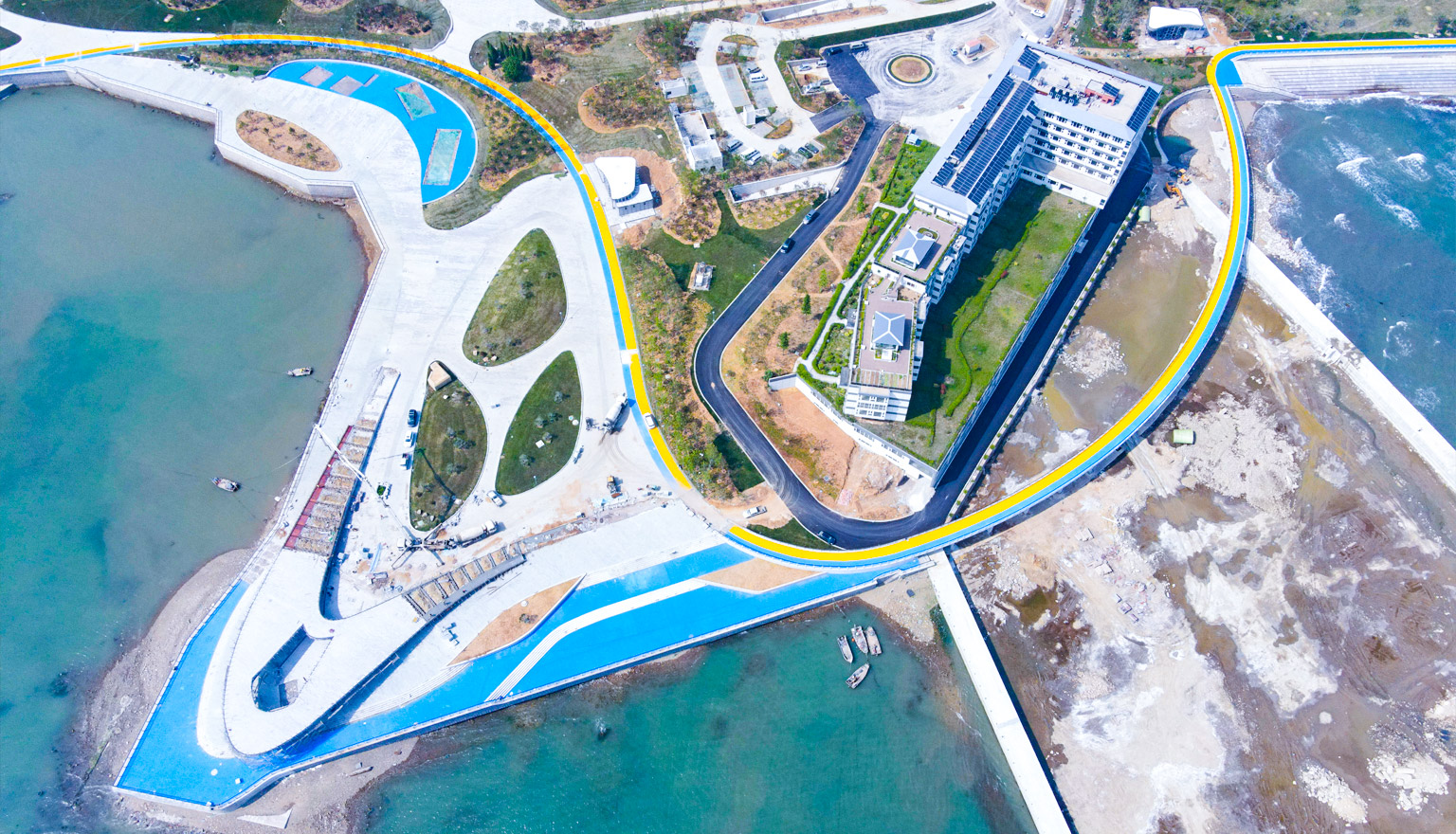 項目位于山東省青島,項目海岸帶整治修復長度約5.5千米,總面積約98公頃。北岸海岸帶綜合整治包括岸灘修復、濱海景觀建設、配套設施建設;二期建設內容主要包括海域清淤,陸域綠化等生態修復工程、親水平臺等護岸工程及臨海河道兩側綠化等整治工程。