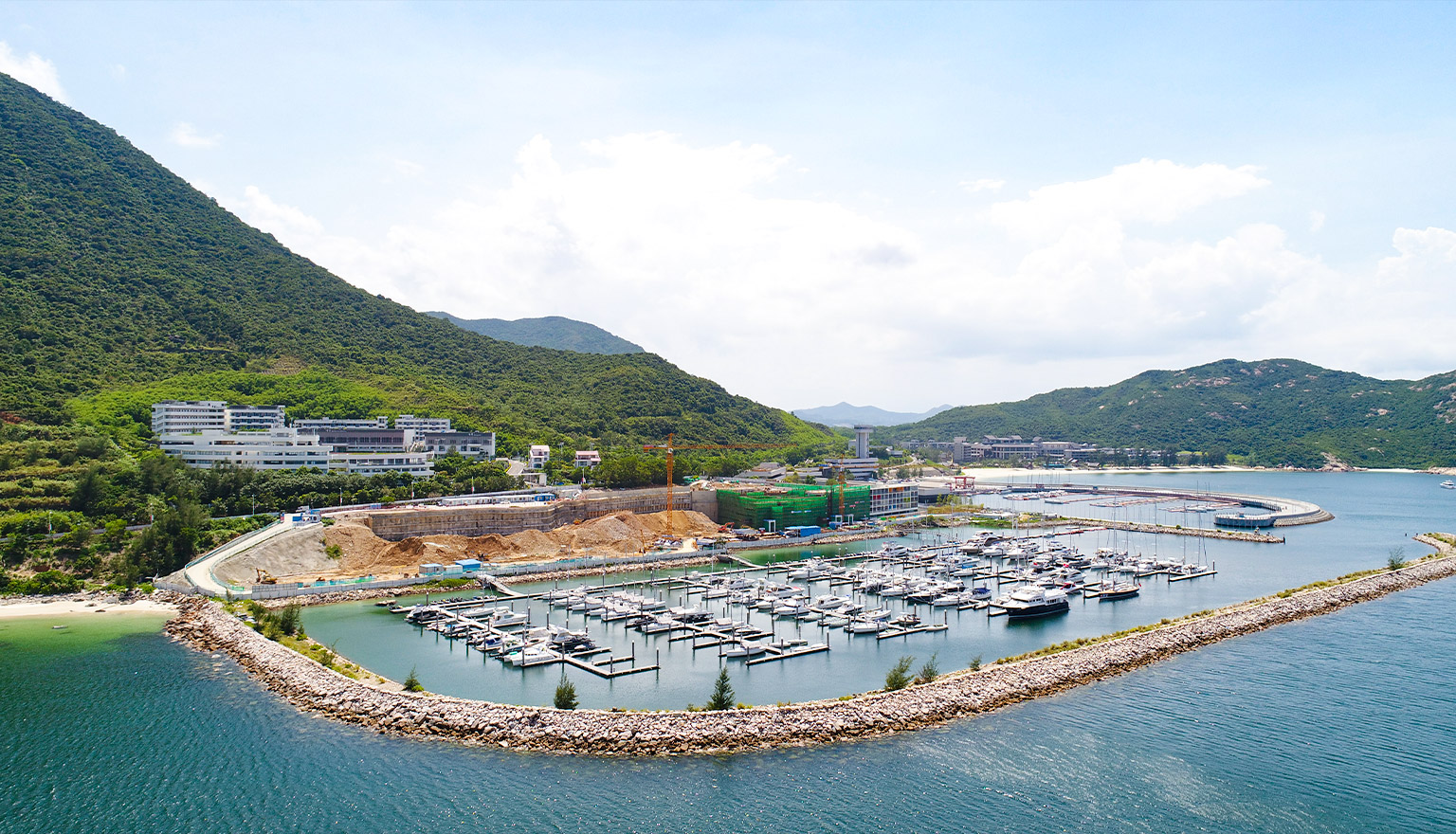 建設(shè)會(huì)所大樓、全封閉的會(huì)員公寓、800多米長(zhǎng)的防波堤、275個(gè)游艇泊位、400個(gè)干船倉(cāng)、游艇維護(hù)車間等設(shè)施。