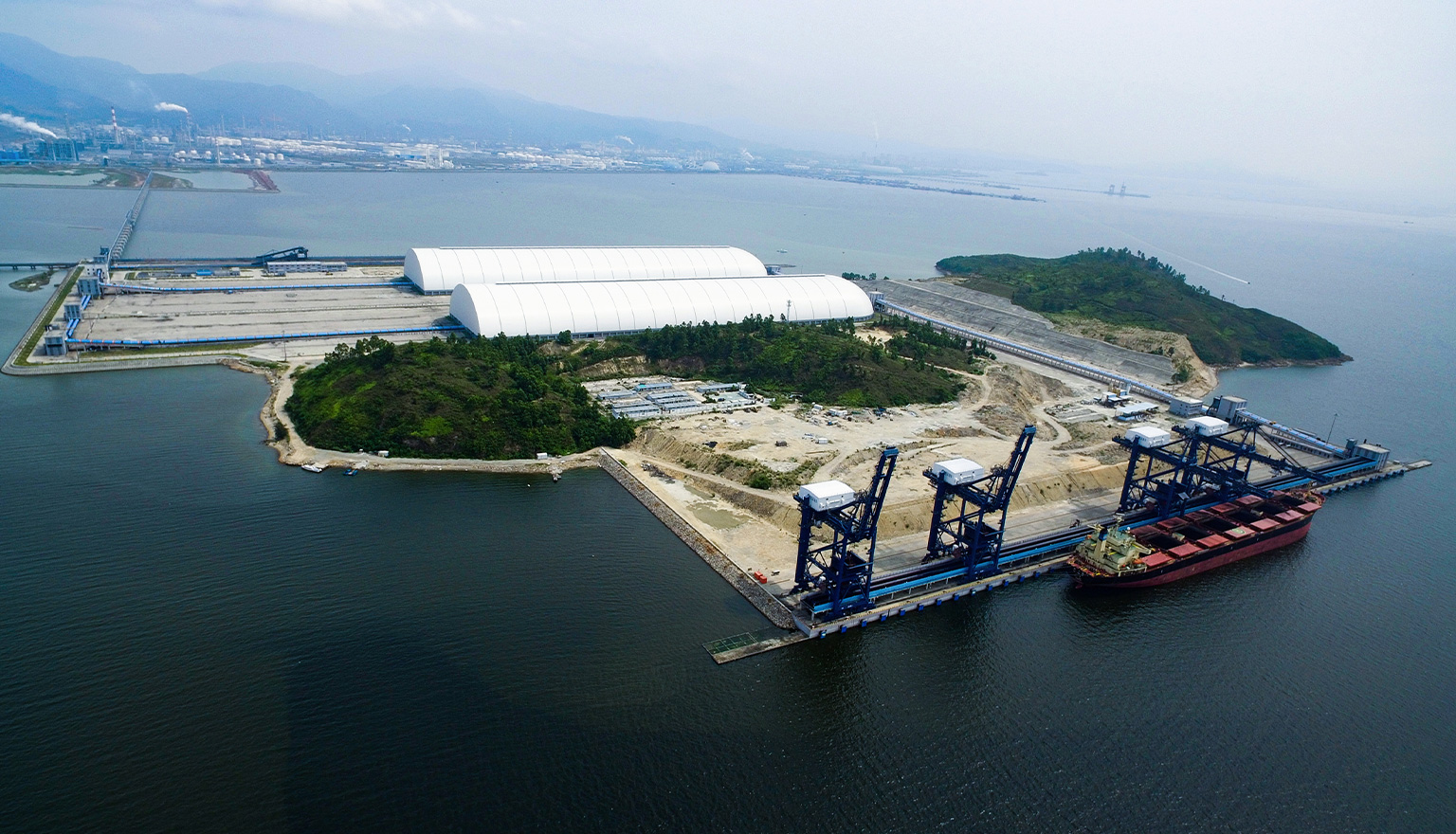 項目建設2個7萬噸級(水工結構15萬噸級)煤炭泊位,設計年通過能力1500萬噸。依托該項目,中交四航院編制了水運協會團體規范《港口封閉條形煤場設計規范》。榮獲國家“平安工程”及“中國鋼結構金獎工程”。