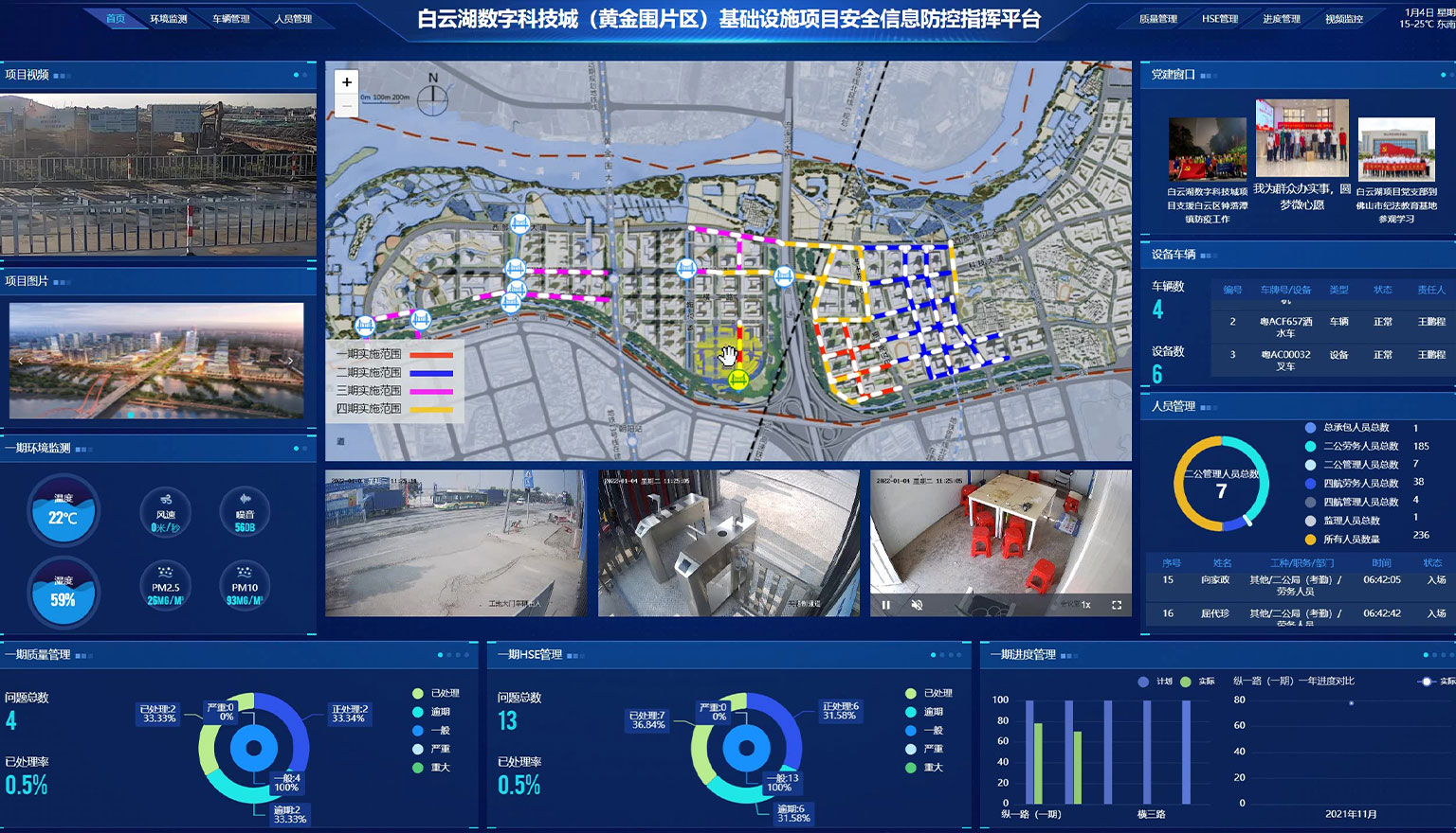 圍繞工程信息管理、人員管理、設(shè)備車輛管理、視頻監(jiān)控環(huán)境監(jiān)測、HSE管理、質(zhì)量管理、進度管理、黨建教育九大模塊,實現(xiàn)對施工管理的智慧化賦能。